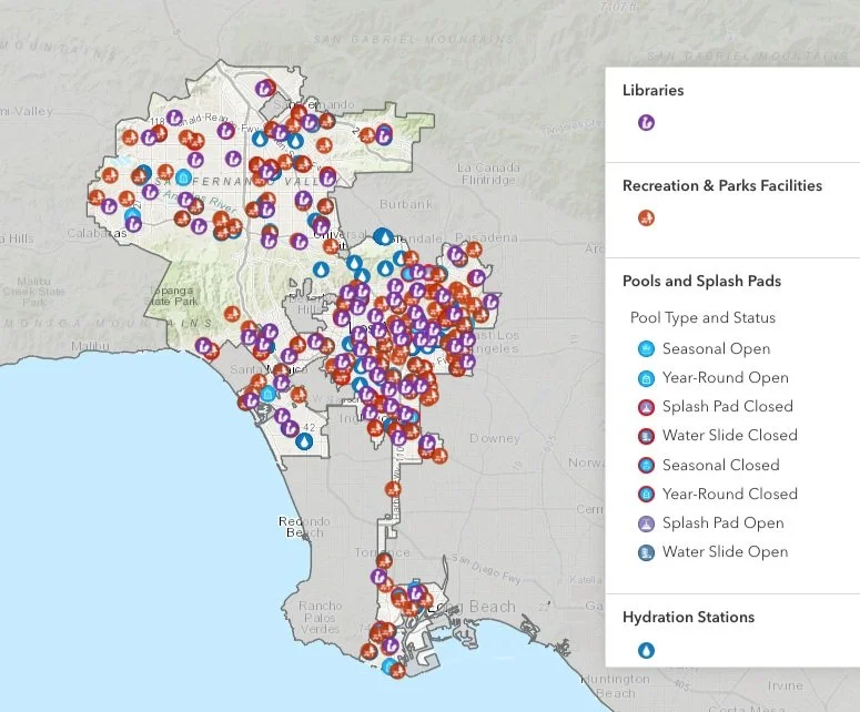 Si vive en la ciudad de Los Ángeles, el mapa Cool Spots LA tiene ubicaciones adicionales dónde Angelinos pueden ir para refrescarse durante las emergencias.