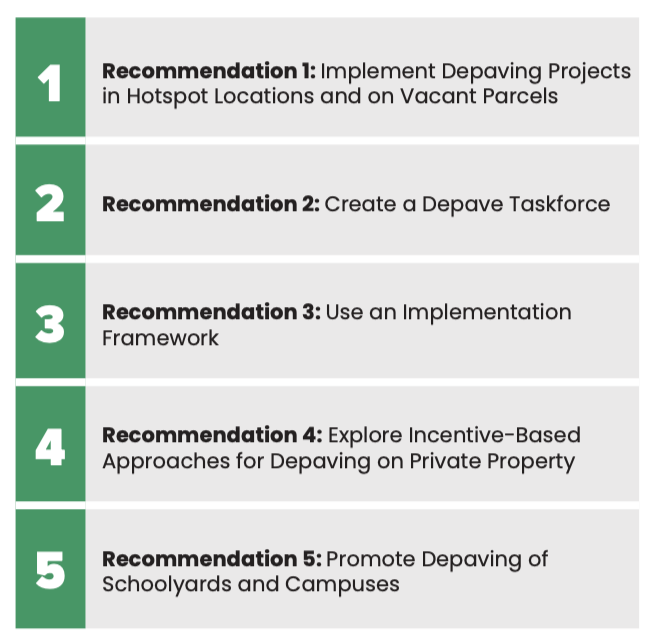 Based on these findings, Depave LA presents five targeted recommendations offering guidance for future policy and implementations.
